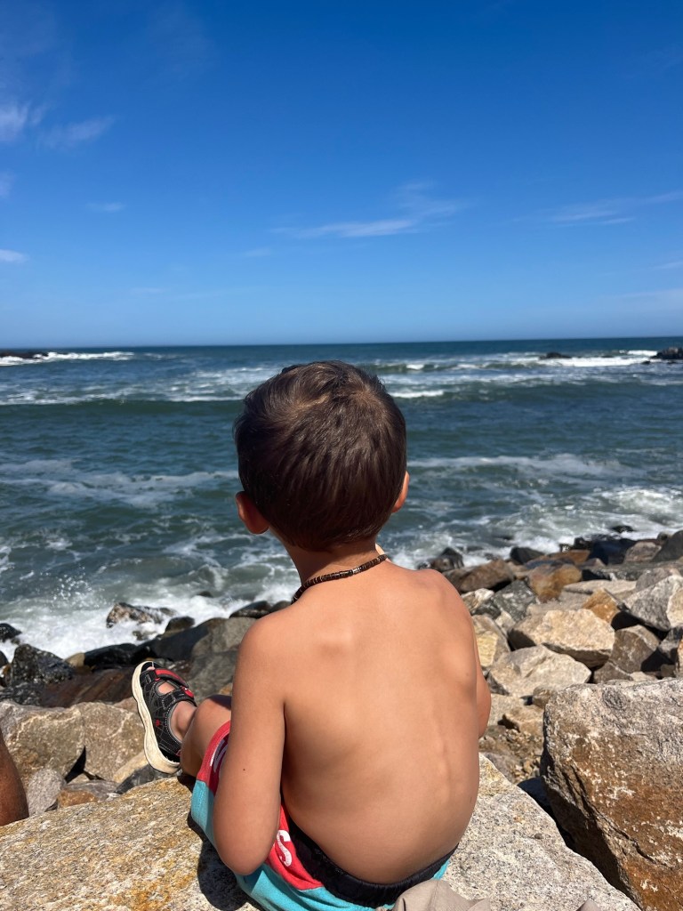 I think after our first lighthouse we saw. Tanner was over it. I mean I get it. He is more interested in running around and again climbing on the rocks.