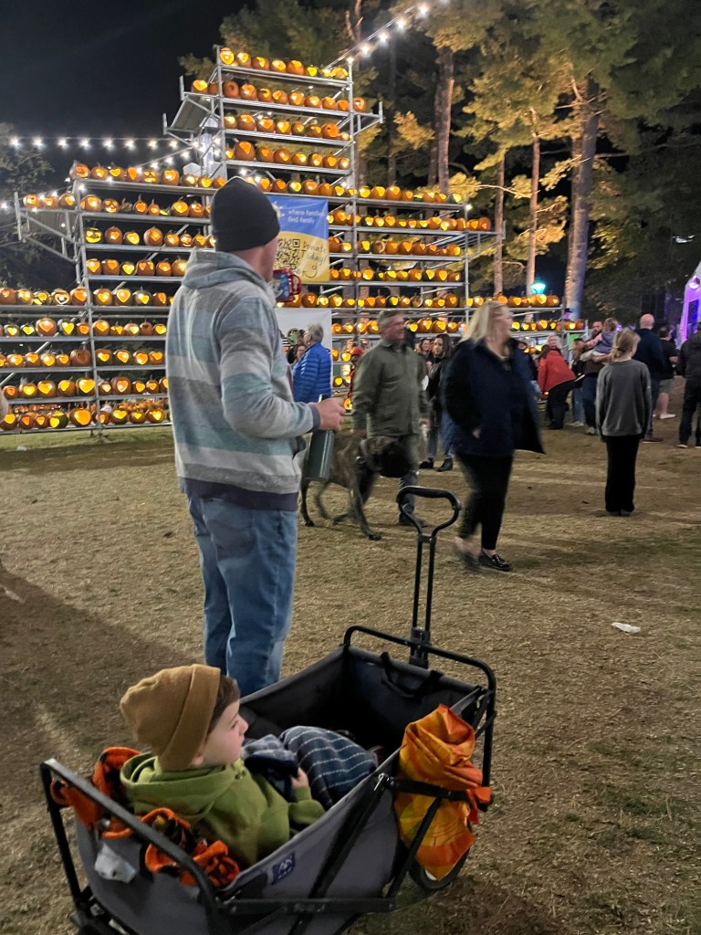 Some of the kids were really talented. After the event is done they let people take whatever pumpkins they want home. So tanner of course had a full wagon full.
