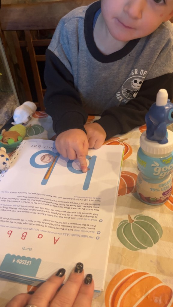 Oh !! Tanner started his home Pre-k. Everyone always asks what we plan to do with this smart boy and we always say we would homeschool! So we’ve begun! We’re using the Good and the beautiful pre k lesson plans and so far LOVING them. It’s easy enough for us and he enjoys them. We don’t force him and we have a weekly set schedule. ( or atleast we try to )