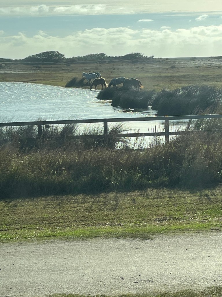 So full disclosure… the wild horses are not really wild horses. They cannot leave the island or surrounding area they live on. It’s a preservation. And in fact visitors are asked to keep the gate that goes into the area closed so wildlife doesn’t get out.
